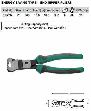 SATA 72503A ENERGY SAVING TYPE - END NIPPER PLIERS 8 inch (200 mm, ø2.6mm) | EMIN.COM.MM