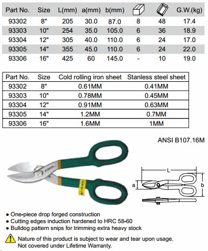 SATA 93305 STRAIGHT PATTERN SNIPS (14 inch,355 mm) | EMIN.COM.MM