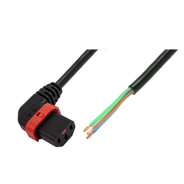 Schaffner IL13P-R-SE-H05-3100-300 AC Power Cord w/Lock C13+ right-angled, Stripped End, H05VV-F, 3x1.00 mm sq., 3 m, black | EMIN.COM.MM