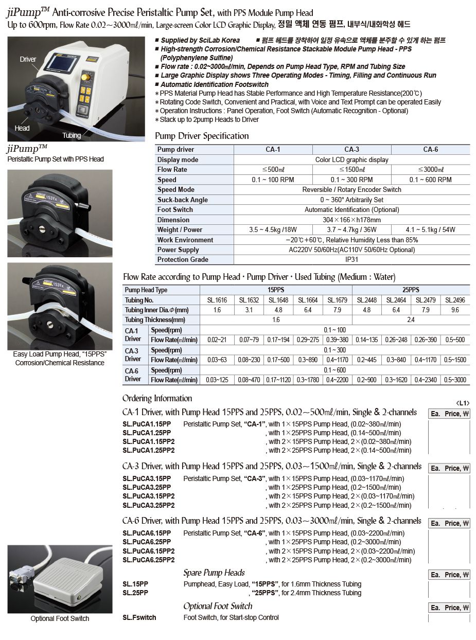 SciLab CA-1 Peristaltic Pump (0.1~100 RPM, ≤500ml) | EMIN.COM.MM