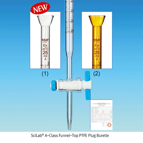 SciLab SL.Bur1007 Burette, A-Class, Funnel-Top, PTFE-Plug, Amber, 50 / 0.10㎖, accu.±0.05㎖ | EMIN.COM.MM