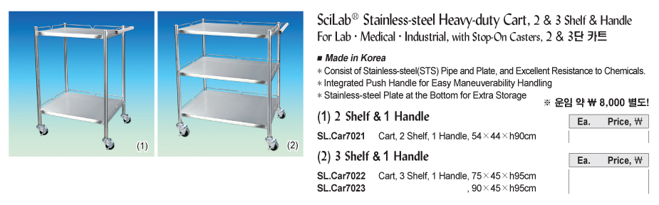 SciLab SL.Car7022 Stainless-steel Heavy-duty Cart (3 shelves, 1 handel, 75×d45×h95cm) | EMIN.COM.MM