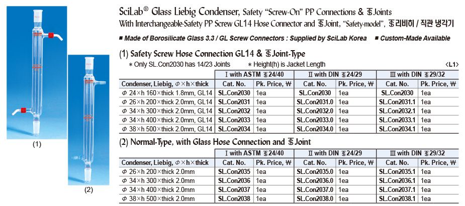 SciLab SL.Con2037.1 Glass Liebig Condenser (Normal-Type, 29/32 Joints)