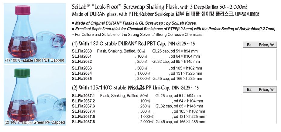 SciLab SL.Fla2037.3 Leak-Proof Screwcap Shaking Flask (250ml, GL32; 3 Deep-Baffles) | EMIN.COM.MM