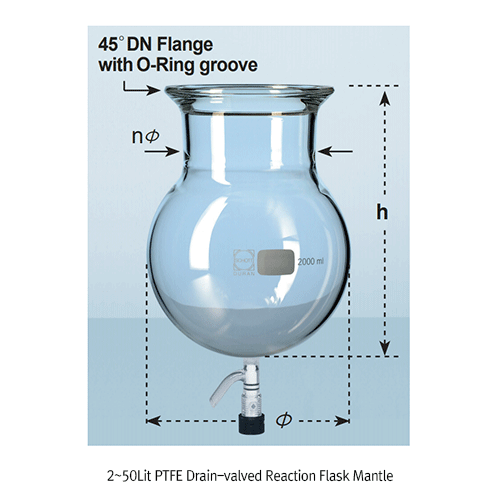 SciLab SL.Re2295 PTFE Drain-valved DURAN-glass Reaction Flask, DN150, 10,000~12,000(full)㎖ | EMIN.COM.MM