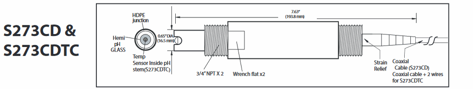 SENSOREX S273CDTC PH Electrode (0-14pH, Hemi-pH Glass, temperature sensor) | EMIN.COM.MM