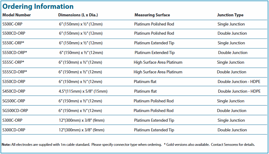 SENSOREX S500C-ORP/TL ORP sensor (Platinum, +/- 2000mV) | EMIN.COM.MM