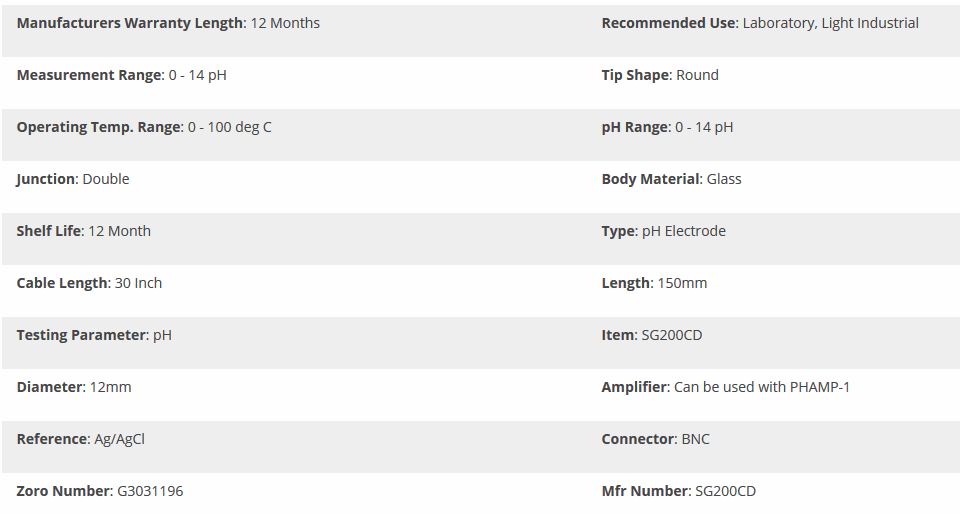 SENSOREX SG200CD pH Electrode (0 ~ 14 pH, double junction, BNC) | EMIN.COM.MM