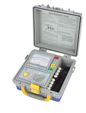 | ● Capable of measuring earth resistance and earth voltage. ● 2mA measuring current permits the testing of earth resistance without tripping earth leakage current breakers in the circuit under test. ● In addition to facilitating for precision measurement, test leads for simplified two-wire measuring system also are supplied as standard accessories. ● Battery operated. ● Battery life indicator. ● Calibration performed with supplied test leads. |