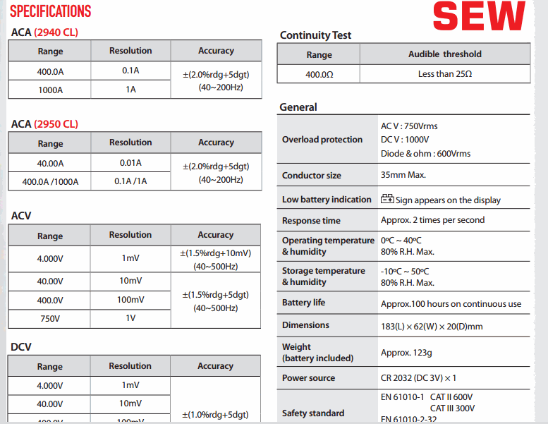 SEW 2950 CL Clamp Meter (AC 1000A) | EMIN.COM.MM