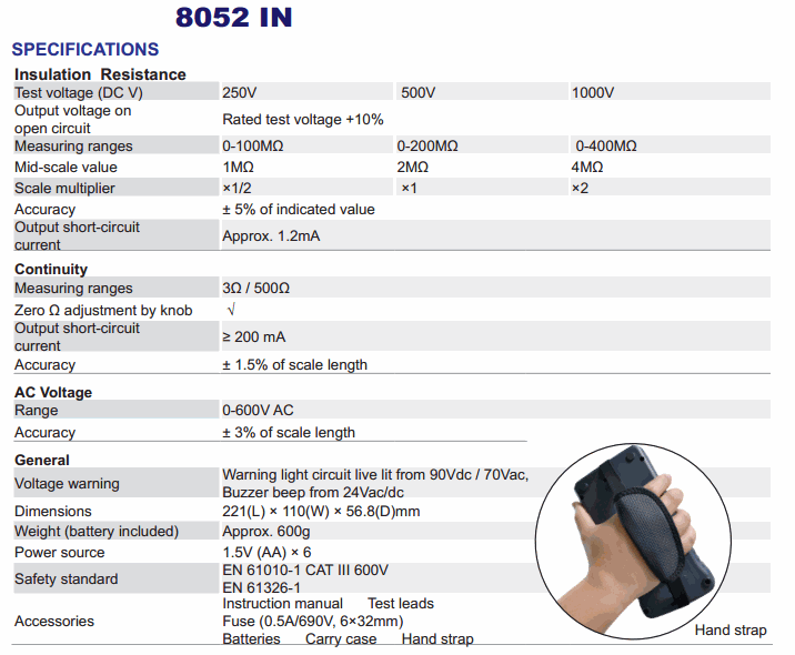 SEW 8052 IN Analogue Insulation Tester (1000V, 400MΩ)
