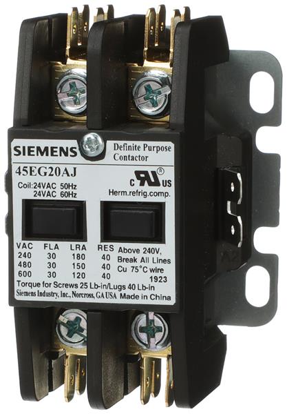 SIEMENS 45EG20AJ Electromechanical Contactors Contactor, 45DP,30A,2P,Open,24V | EMIN.COM.MM