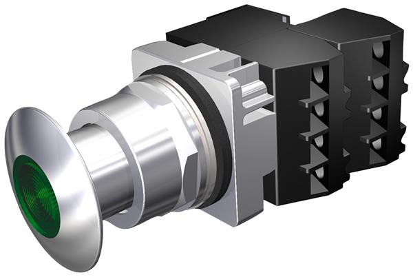 SIEMENS 52PP2G3GB Push-Pull PP2,CHROME,MTD,XF 120V LED,CHR-GREEN,2NC | EMIN.COM.MM