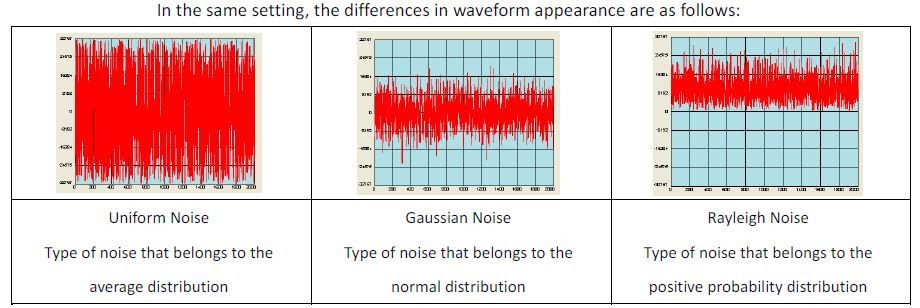 Take AFG-3000 as an example, it provides 8M long memory depth, which allows users to edit or output any number of points within the 8M range. It is also equipped with arbitrary waveform editing software, which can satisfy the need to generate noise-containing signal output. There are three types of noise built into the AFG-3000 arbitrary waveform editing software, namely Uniform Noise, Gaussian Noise and Rayleigh Noise. The main difference lies in the range of probability distribution.