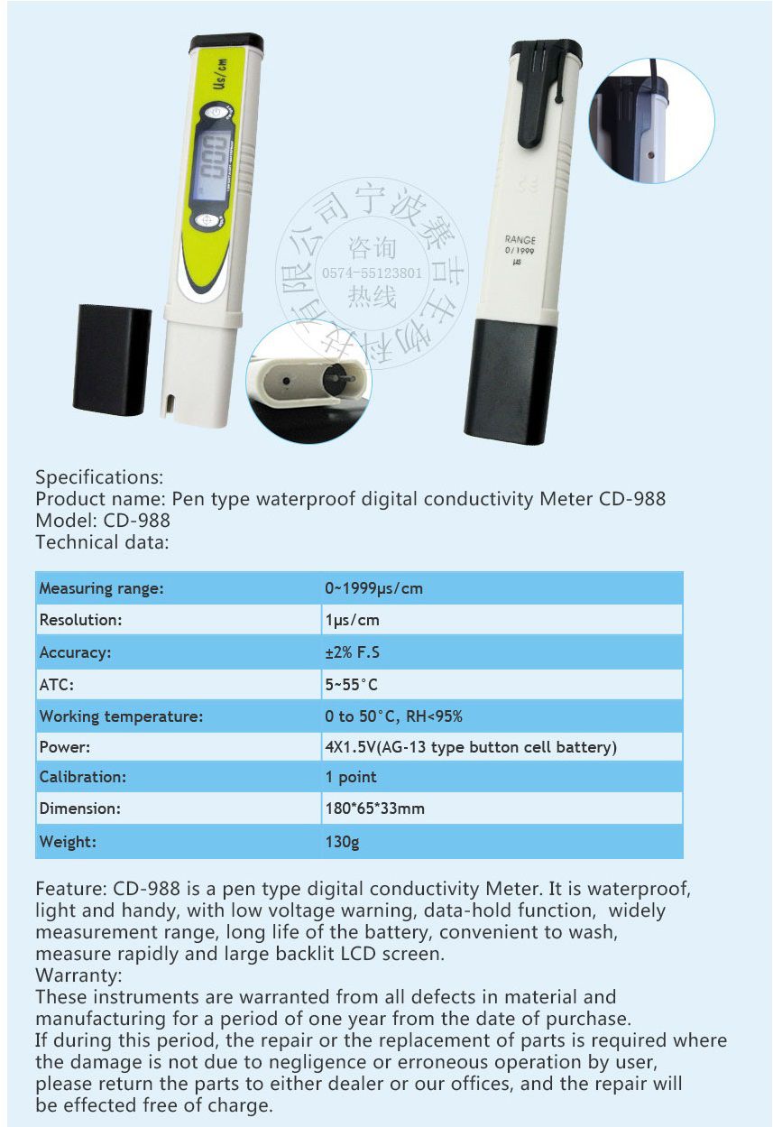 Sinotester CD-988 Pen Type Conductivity Meter (1μs/cm) | EMIN.COM.MM