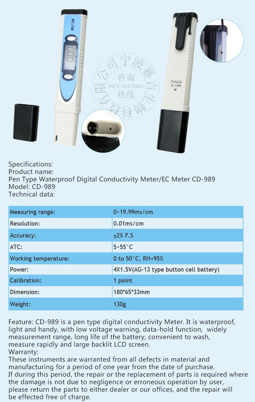 Sinotester CD-989 Pen Type Conductivity Meter (0~19.99ms/cm, 0.01ms/cm) | EMIN.COM.MM