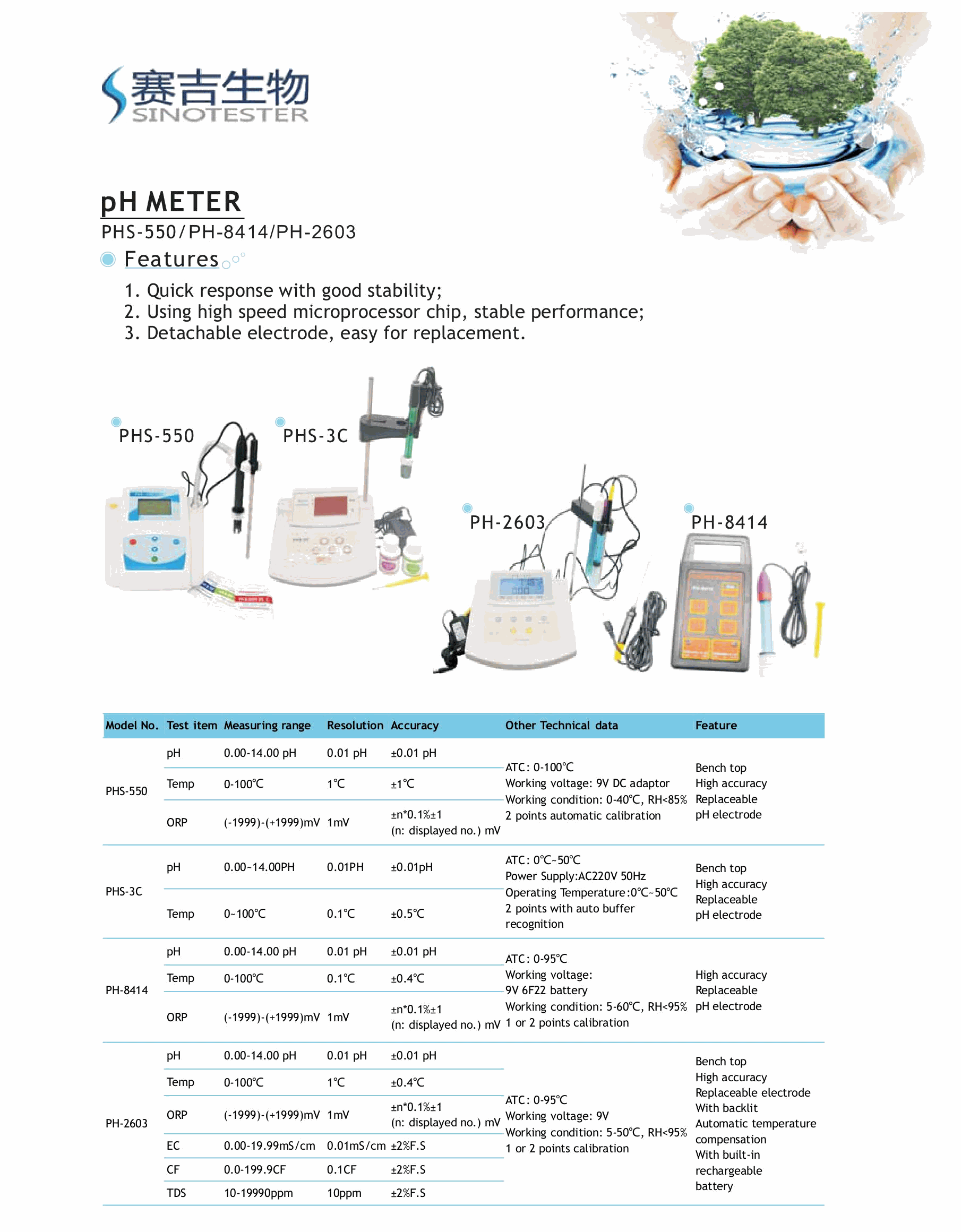 Sinotester PH-2603 Bench top pH Meter (0.00~14.00pH, ±0.01pH) | EMIN.COM.MM
