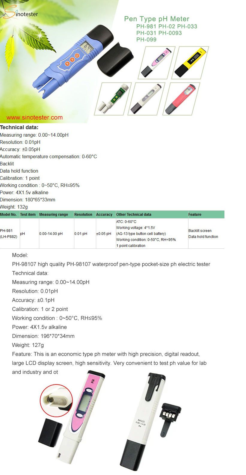 Sinotester PH-981 Pen Type pH Meter (0.0~14.0pH, 0.01pH) | EMIN.COM.MM