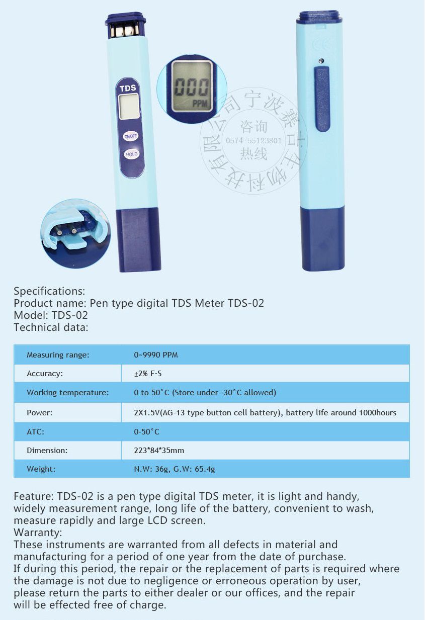 Sinotester TDS-02 TDS Meter (0~9990ppm, ±2% F.S) | EMIN.COM.MM