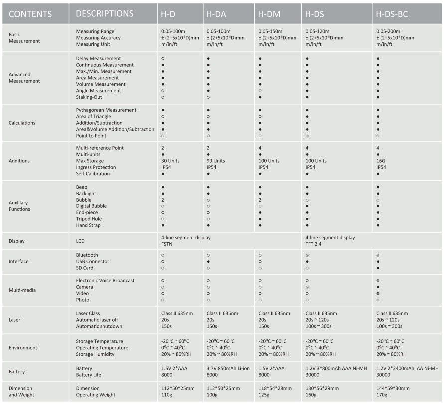 Measuring Accuracy: ±(2 + 5x10^-5D)mm