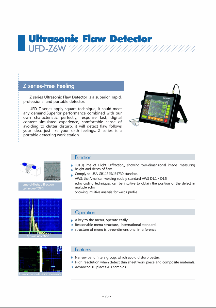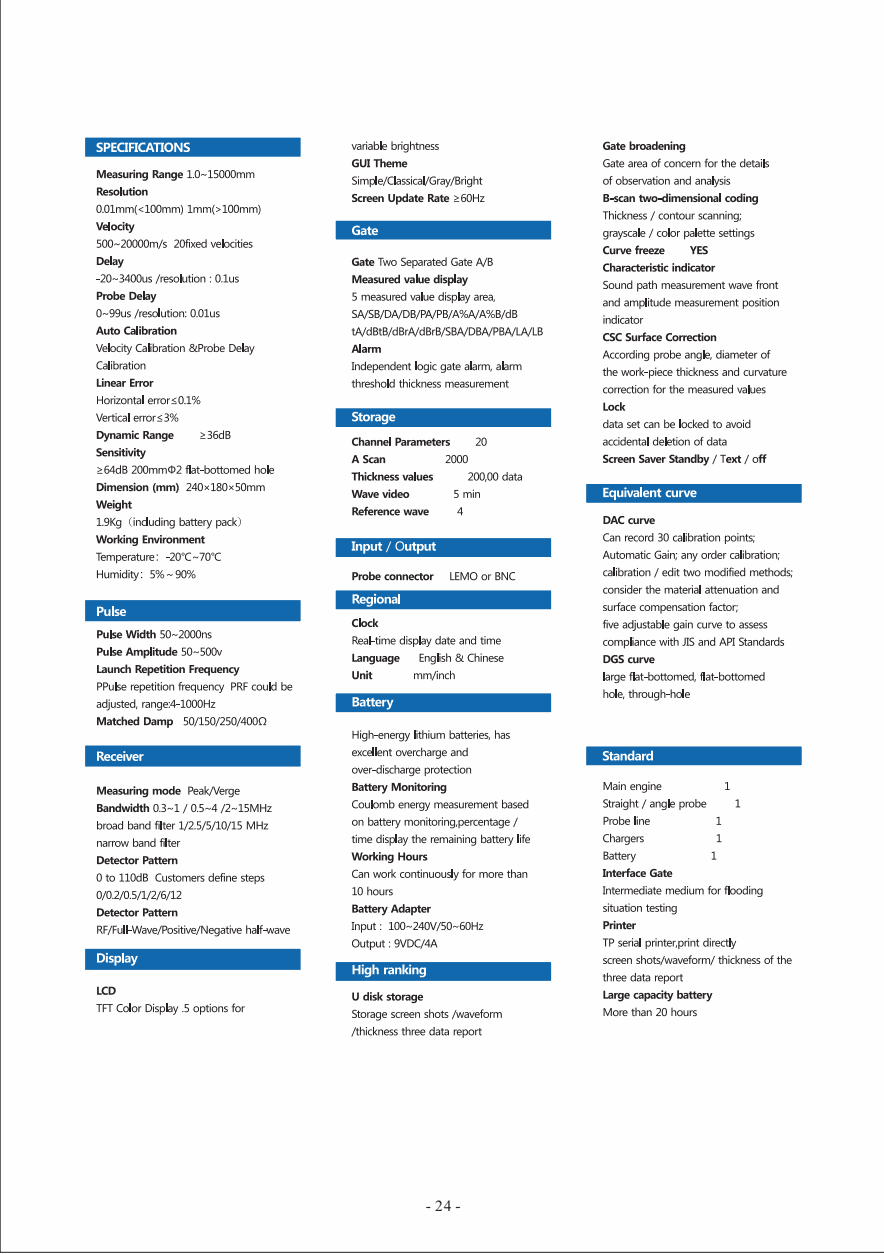 Sensitivity: ≥64dB 200mmΦ2 flat-bottomed hole