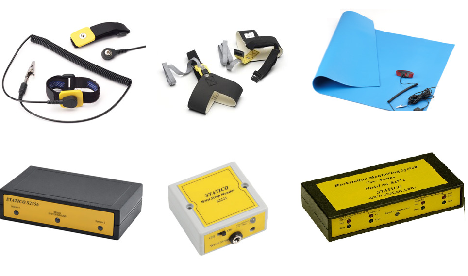 According to official product listings, Statico covers a wide spectrum of ESD control items: wrist straps, anti-static heel straps, grounding accessories, table and floor mats, ESD monitors, ionizers, measurement tools, and various ESD testing devices.