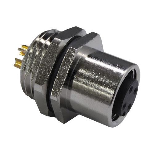 Stewart Connector SS-12000-005 Straight M12 A-Code Connector Female Front Panel Mount Receptacle 4 Contact Solder Cup Contacts | EMIN.COM.MM