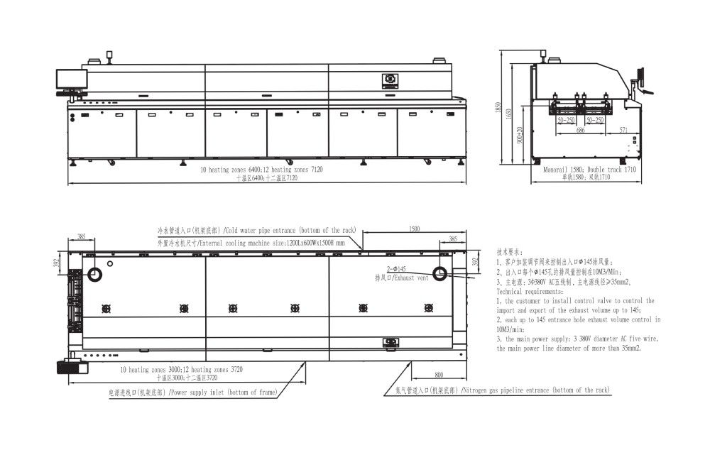 - Outlet Exhaust Diameter,valume: 2-Φ145,Exhaust demand 10m³/min x2