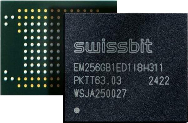 Swissbit SFEM032GB1ED1TO-I-5E-311-STD eMMC Industrial Embedded MMC, EM-30 (100-b), 32 GB, 3D TLC Flash, -40C to +85C