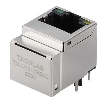 Taoglas TMJD1011BENL Magnetic Jack RJ45 ICM, 10/100 Base-T, 1x1, Vertical, 8 pin THT, T+CMC, Shielded w/step, LED, Commercial grade | EMIN.COM.MM