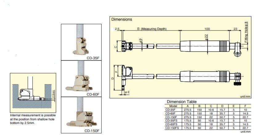 TECLOCK CD-150FS Bore Gauge (50~150mm)(For shallow hole)