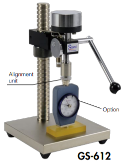 ●Alignment unit which realizes high contact between indenter (contact point) of durometer and test piece is mounted.