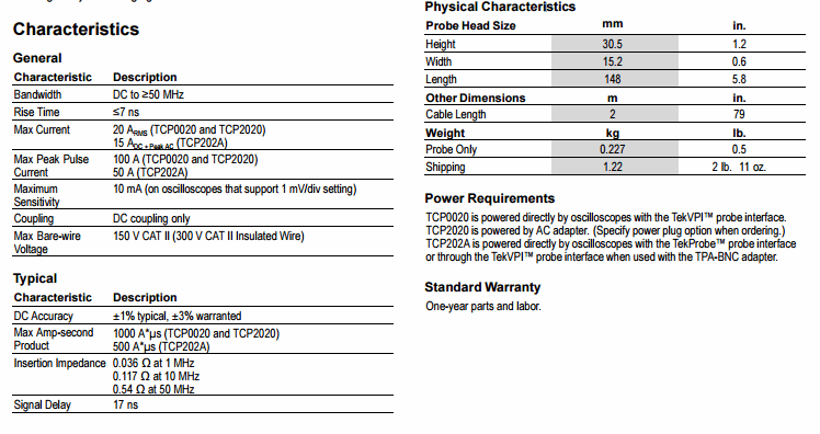 Manufacturer: TEKTRONIX Model: TCP2020 - Contact