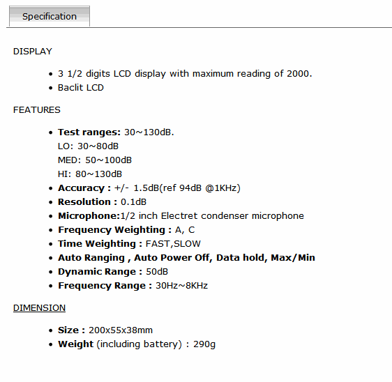 TENMARS TM-102 Sound level meter (30~130dB) | EMIN.COM.MM
