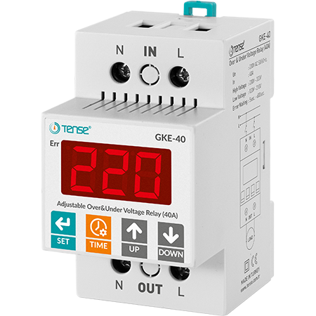TENSE GKE-40 Digital Adjustable MonoPhase Over and Under Voltage Control Relay (220VAC + N)