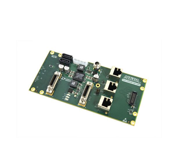 The HSMC Mass Storage and Video card provides an assortment of interfaces to support high performance recording products. Featuring one input and one output Camera Link Port, the daughter card allows direct connection to a Camera Link camera as well as an external interface. Combined with SATA interfaces for disk storage, the card is capable of providing high speed and long duration recording required when shooting high resolution and/or high frame rate digital video. The HSMC Communication daughter card provides a flexible and highly customizable add-on platform for digital video recording applications.
