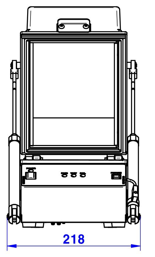 - Outside : 218(W) x 375(D) x 195(H) mm, lid closed. 410(D) x 360(H) mm, lid open.