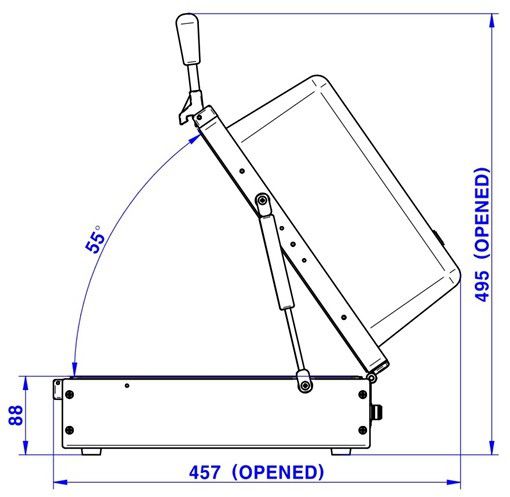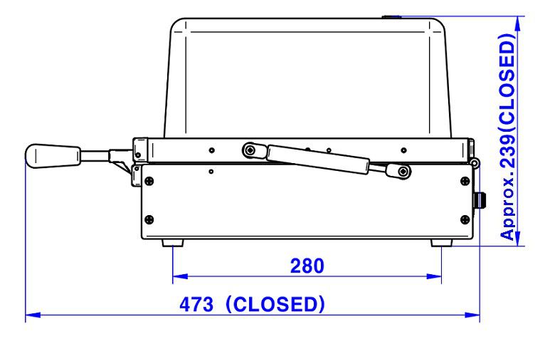 - Outside : 399(W) x 473(D) x 239(H) mm, lid closed. 495(H) mm, lid open.