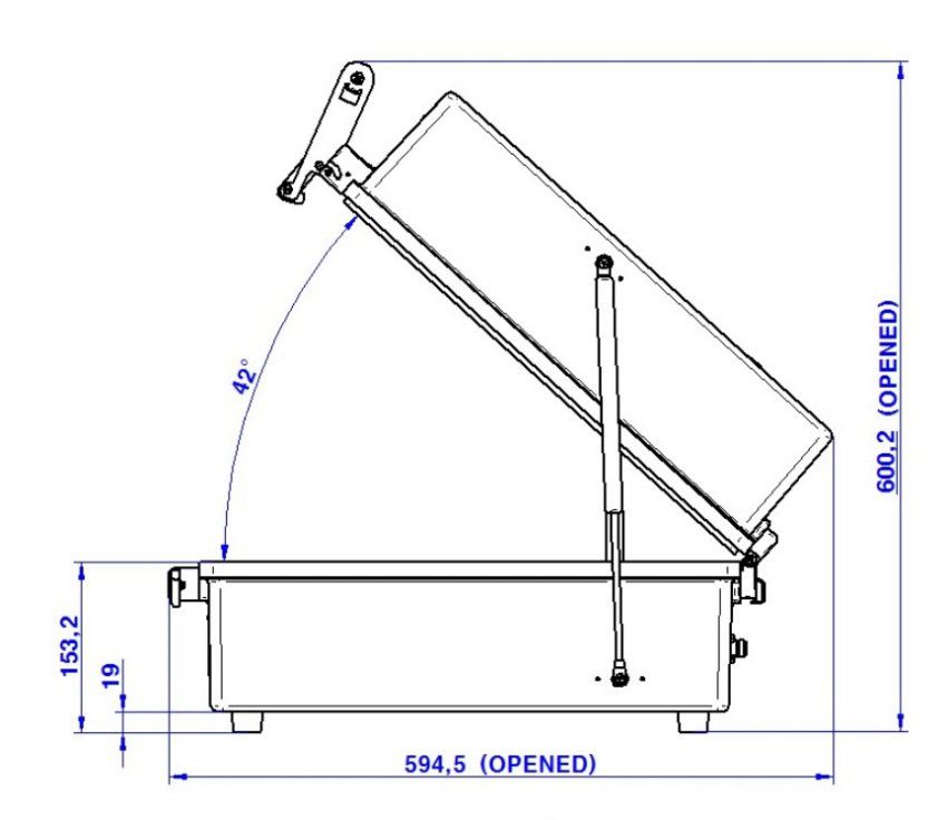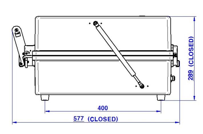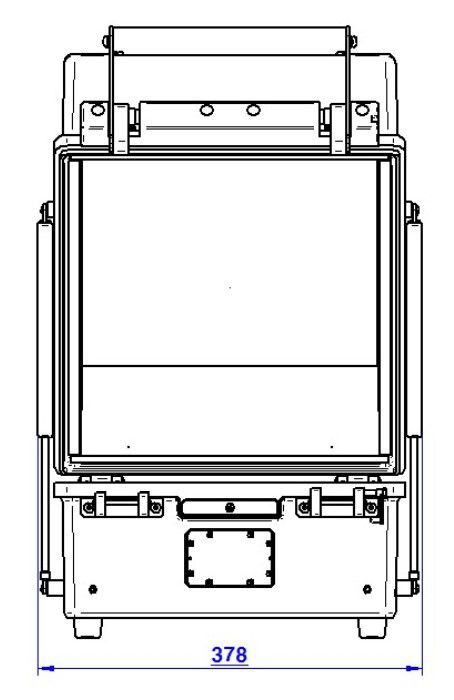 - Outside : 378(W) x 577(D) x 289(H) mm, lid closed. 600(H) mm, lid open.