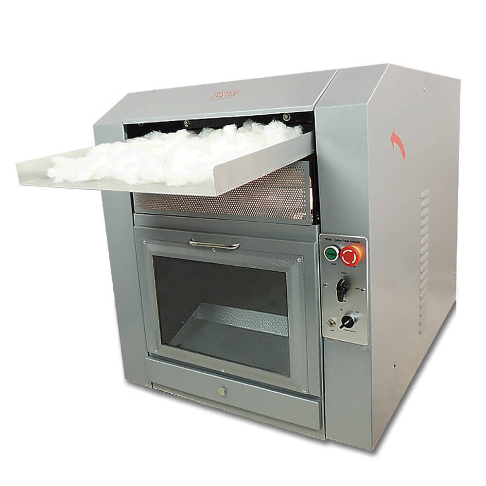 Cotton Trash Analyzer, is to analyze lint, trash and dust content within a sample of raw cotton fiber up to 100 grams. Also it is used to determine non-fiber content of synthetic fibers and to open and clean fibers for further testing. The analyzer uses the carding principle with air separation of lint and non-lint content.