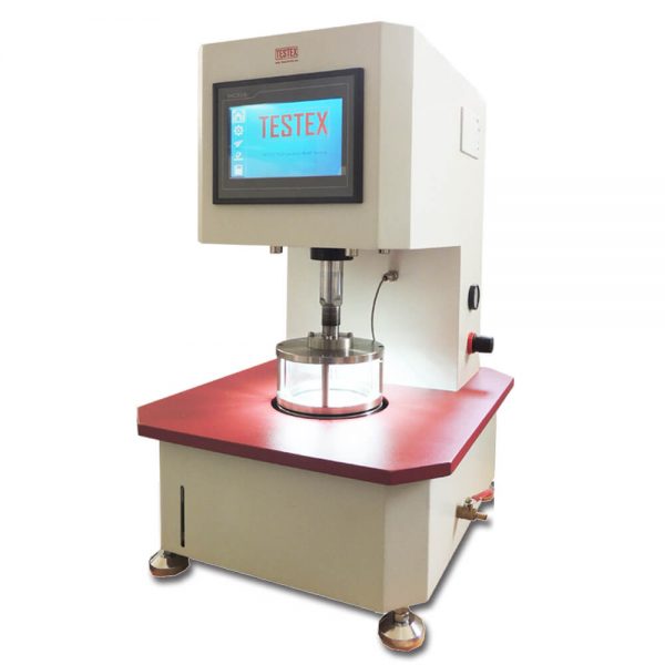 Hydrostatic Head Tester, used for determining the resistance of fabrics (canvas, coated fabrics, cover cloth, rainproof clothing fabrics, and geotextile materials) and films to water penetration under pressure while firmly clamped in the test rig of standard area.