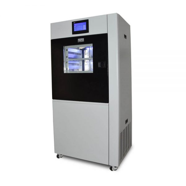 This tester is equipped with touch panel to program and control the test. This machine combined the TF165 and a climatic test chamber, thus the water vapour test cups is placed in an accurately controlled conditioning chamber, making the test more stable and convenient.