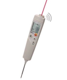 Whats included: Testo 826-T4 penetration infrared thermometer, including TopSafe protective case, wall/belt holder, protective probe cap, and batteries.