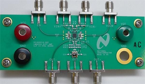 Description/Function: LMH6554LE-EVAL evaluation board is designed to aid in the characterization of TI LMH6554 fully differential amplifier