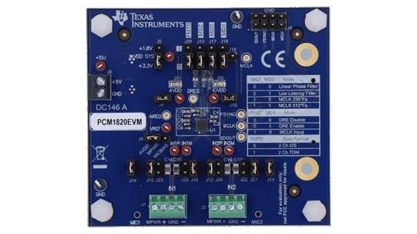 Description/Function: Evaluation Module for PCM1820 Stereo-Channel 32-bit, 192 kHz Audio ADC with 113 dB SNR
