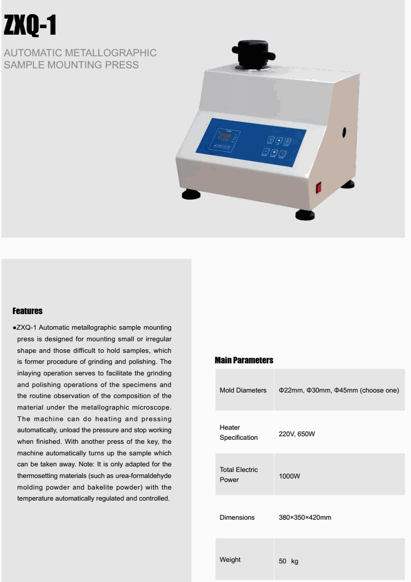 TIME ZXQ-1 Automatic Metallographic Sample Mounting Press (1000W) | EMIN.COM.MM