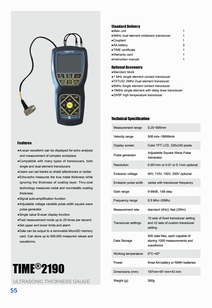 Measurement range: 0.25~500mm