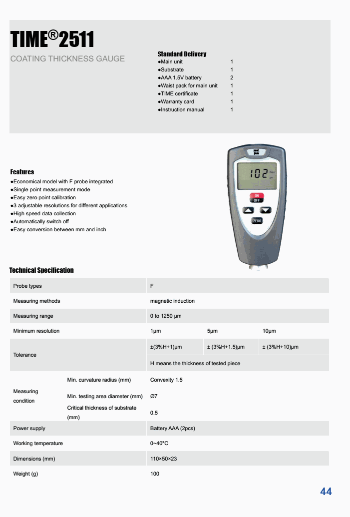 TIME 2511 Coating Thickness Gauge (0~1250 μm)