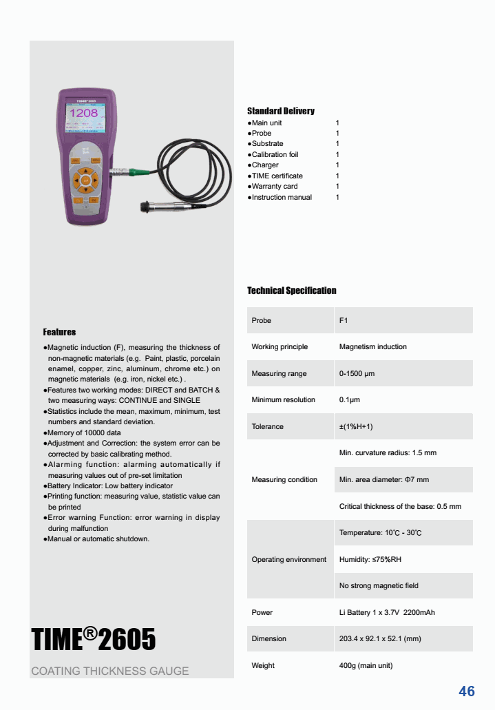 TIME 2605 Coating Thickness Gauge (0-1500 µm; 0,1 µm)
