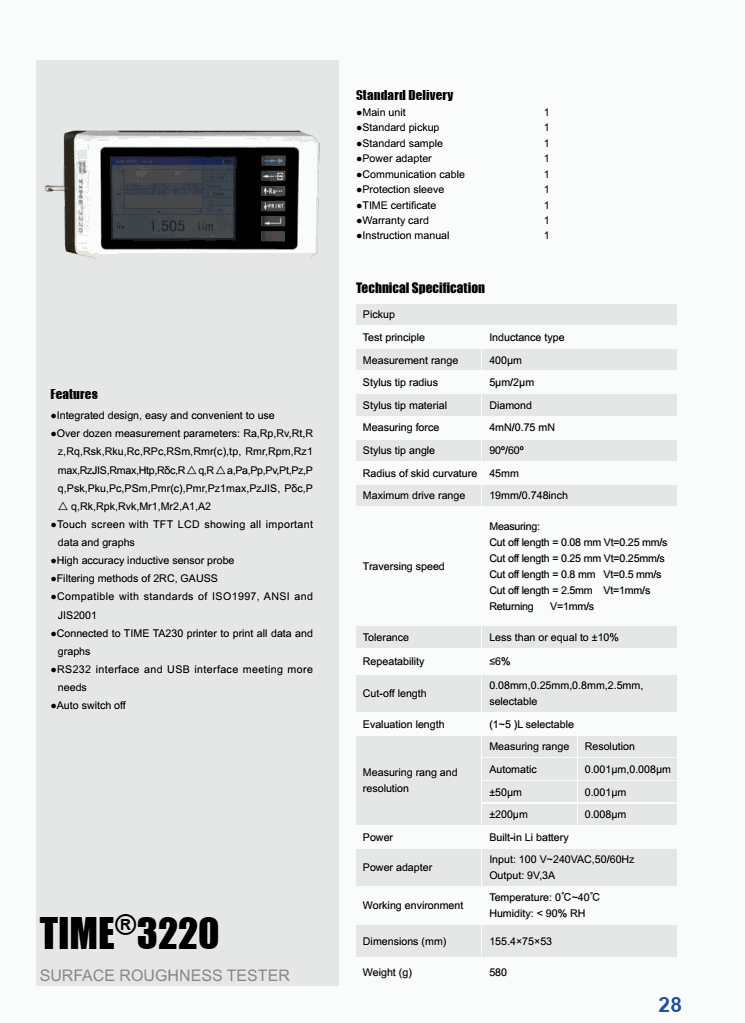 Resolution: 0.001μm, 0.008μm; 0.001μm; 0.008μm